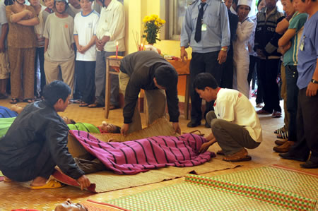 Người nhà nạn nhân tiếp nhận xác người thân. |