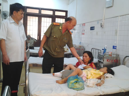 Trước đó, buổi sáng, Đại tá Trần Kỳ Rơi và đoàn công tác của CA tỉnh Đắc Lắc cũng đã đến thăm hỏi, động viên các nạn nhân đang điều trị tại BV Đa khoa tỉnh, hỗ trợ ban đầu mỗi gia đình nạn nhân 500 ngàn đồng.
