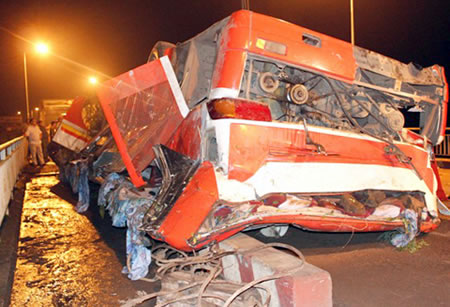 (Cadn.com.vn) - 22 giờ 20 ngày 17-5, vụ tai nạn thảm khốc xảy ra tại cầu 14 (cầu Sêrêpốc), địa phận giáp ranh giữa TP Buôn Ma Thuột (Đắc Lắc) và H. Cư Jút (Đắc Nông) làm 36 người chết, 20 người bị thương nặng. Vào thời điểm trên, xe khách 47 chỗ ngồi BKS 47V-2371 của HTX Quyết Thắng (trụ sở tại H. Krông Pắc, Đắc Lắc) chạy tuyến Đắc Lắc - TPHCM trong khi đang lưu thông theo hướng TP Buôn Ma Thuột đi TPHCM, đến cầu 14 thì bất ngờ mất lái tông đổ lan can bảo vệ thành cầu rồi lao xuống mép sông Sêrêpốc. Do xe rơi từ độ cao trên 20m, cộng với yếu tố bất ngờ nên không một hành khách trong xe nào kịp thoát ra ngoài.