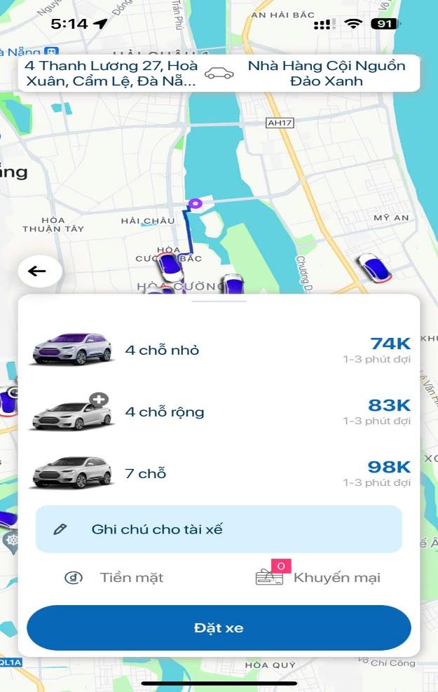 · Đặt xe siêu nhanh: Mở app, nhập điểm đón và điểm đến, xe sẽ có mặt ngay trong vài phút. Không cần gọi điện, không mất thời gian chờ đợi lâu!