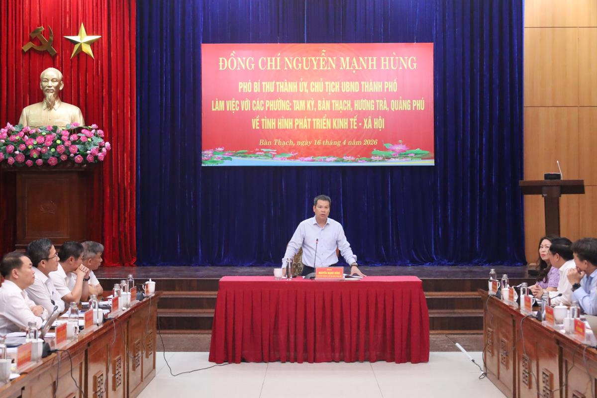 Chiều 16-4, tại phường Bàn Thạch, Đoàn công tác của lãnh đạo TP Đà Nẵng Phó Bí thư Thành ủy, Chủ tịch UBND TP Nguyễn Mạnh Hùng làm Trưởng đoàn đã có buổi làm việc với UBND các phường Tam Kỳ, Bàn Thạch, Hương Trà và Quảng Phú (TP Tam Kỳ cũ) để nghe báo cáo về tình hình kinh tế- xã hội (KT-XH) của địa phương và xem xét giải quyết các kiến nghị, đề xuất liên quan thuộc thẩm quyền. Tham dự cùng đoàn công tác có Phó Chủ tịch HĐND TP Trần Xuân Vinh; các Phó Chủ tịch UBND TP Phan Thái Bình và Trần Nam Hưng.