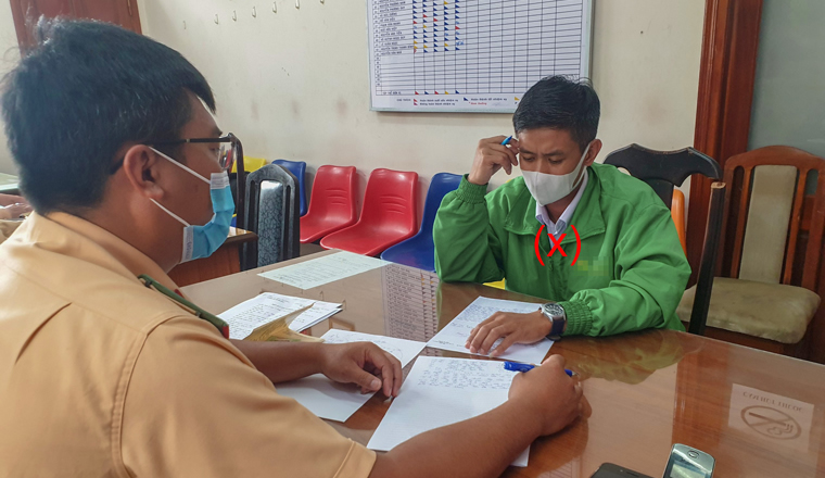 Tài xế Lợi (x) làm việc với cơ quan Công an. |