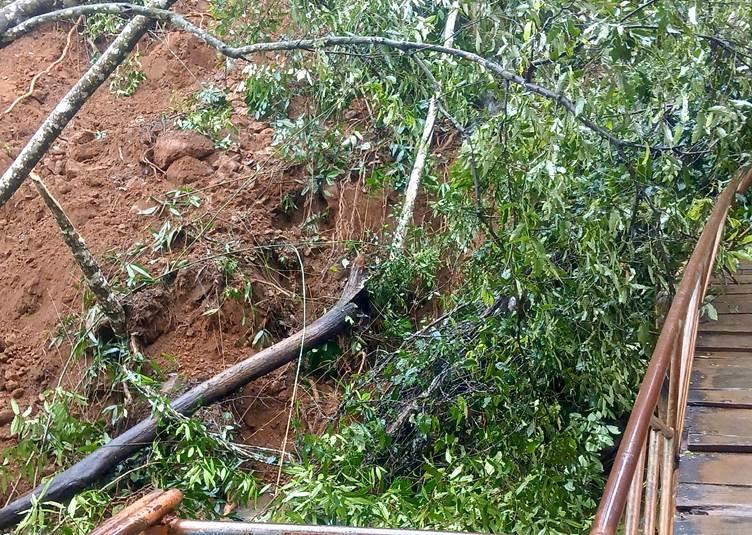 Trước đó, đợt mưa lũ kéo dài từ ngày 16 đến 22-11 đã gây sạt lở lớn trong toàn bộ khu vực điểm du lịch. Cầu và hệ thống suối bị hư hỏng nặng, nhiều căn nhà, chòi bên trong khu du lịch cũng bị sạt lở. Hiện nước đang chảy tràn qua khu vực này không thể ra vào, gây nguy hiểm.