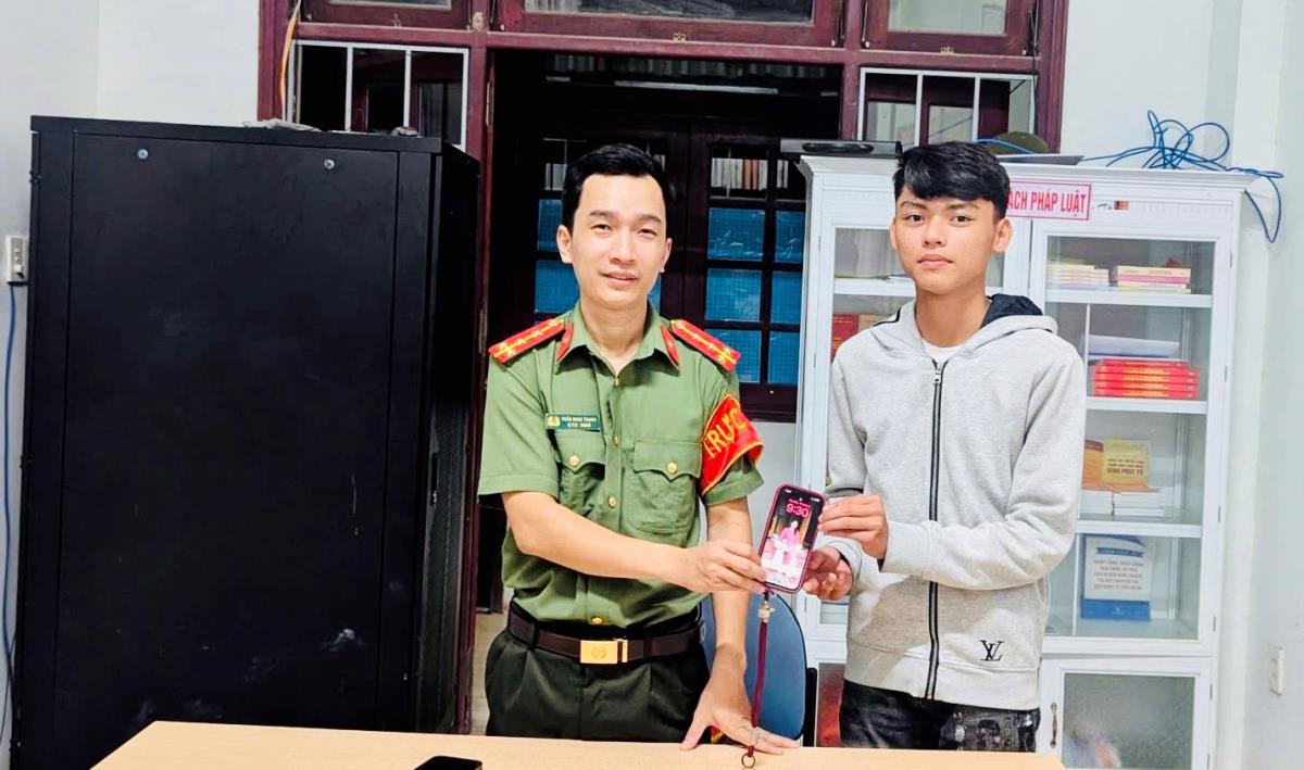 Em Lê Văn Quang sau khi nhặt được chiếc điện thoại di động đã nhanh chóng liên hệ với Công an xã Nông Sơn, thành phố Đà Nẵng để hỗ trợ trả lại cho người bị đánh rơi.