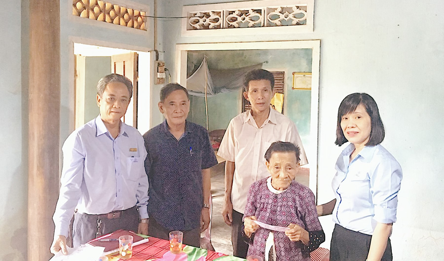 Ngày 01/7/2020, Chi bộ TC&NS-TTBVPC đã dùng toàn bộ số tiền quyên góp được thời gian qua là 10 triệu đồng để trao tặng cho gia đình bà Nguyễn Thị Cung – 77 tuổi. Hoàn cảnh của gia đình bà Cung cực kỳ khó khăn. Bà có hai người con nhưng vì hoàn cảnh kinh tế quá khó khăn nên cả hai người đều phải nghỉ học sớm để lao động phụ giúp gia đình. Tuy nhiên, điều bất hạnh đã xảy ra trong gia đình bà, sau khi chồng mất vì tai biến, con trai lớn của bà cũng qua đời vì bệnh; người vợ, người mẹ già phải vượt qua hai nỗi đau lớn để sống và nuôi dưỡng người con trai còn lại bị bệnh tâm thần. Hiện nay, hai mẹ con bà đang sống tại căn nhà nhỏ đã dột nát tại Tổ dân phố 6, Thị Trấn Châu Ổ, huyện Bình Sơn. Trong năm 2018, Chi bộ cũng đã đến nhà thăm đồng thời trao phần quà của Đảng viên, công nhân viên tiết kiệm 10 triệu đồng cho gia đình ông Nguyễn Văn Minh tại số nhà 200, Tổ 10, phường Nghĩa Lộ, thành phố Quảng Ngãi là con liệt sỹ, bị mù, gia đình rất khó khăn.