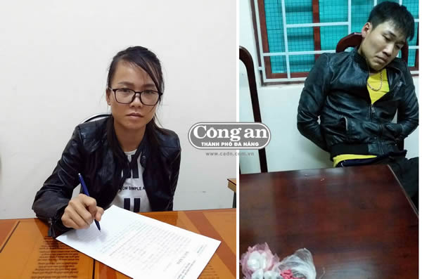 | Nông Thị Thơm và Lữ Văn Diệp cùng số thuốc lắc thu giữ tại quán nước của đối tượng Trần Thị Hải. |