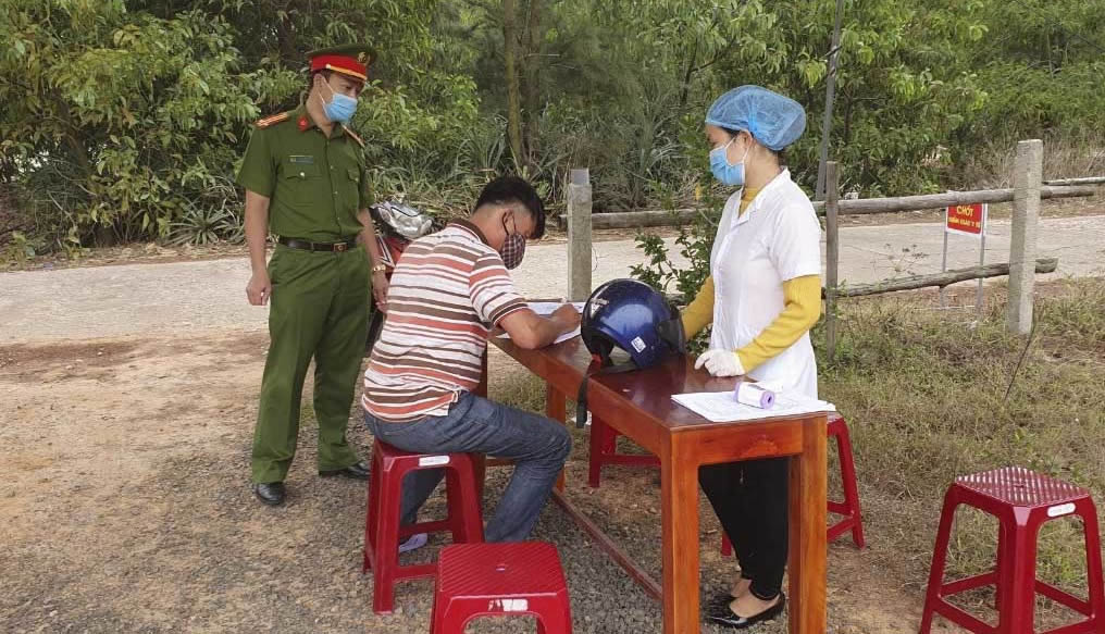 Trung tá Việt tham gia trực chốt kiểm tra y tế. |
