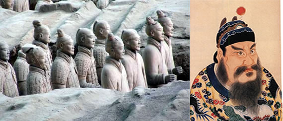 Đội quân đất nung của Tần Thủy Hoàng (phải). |