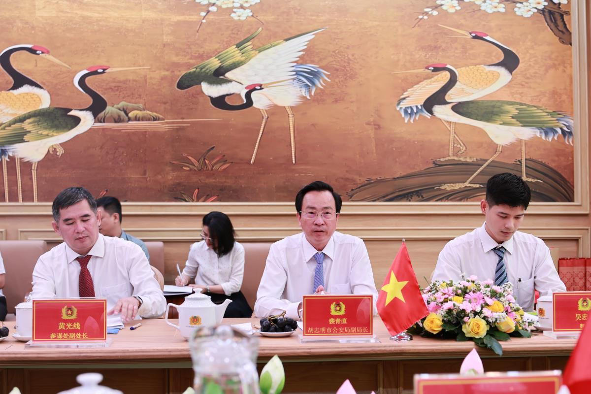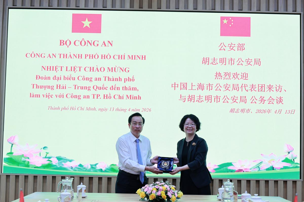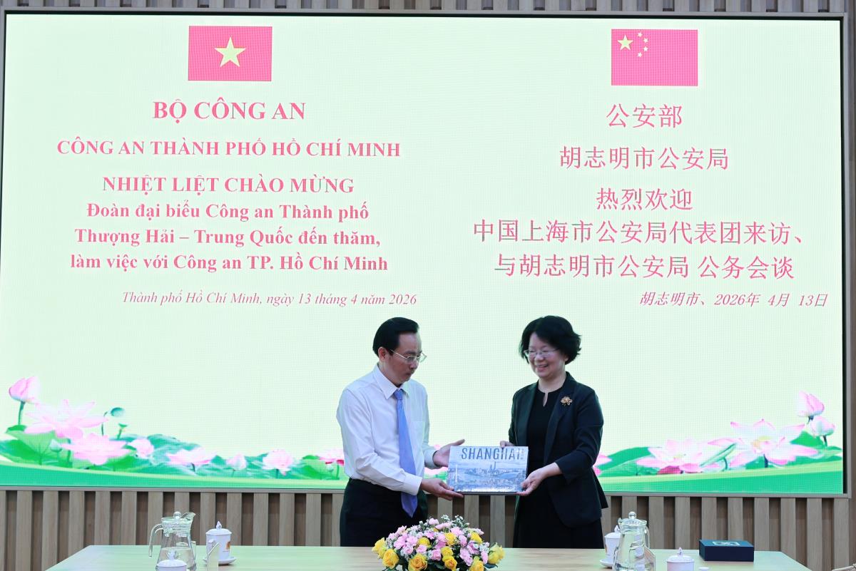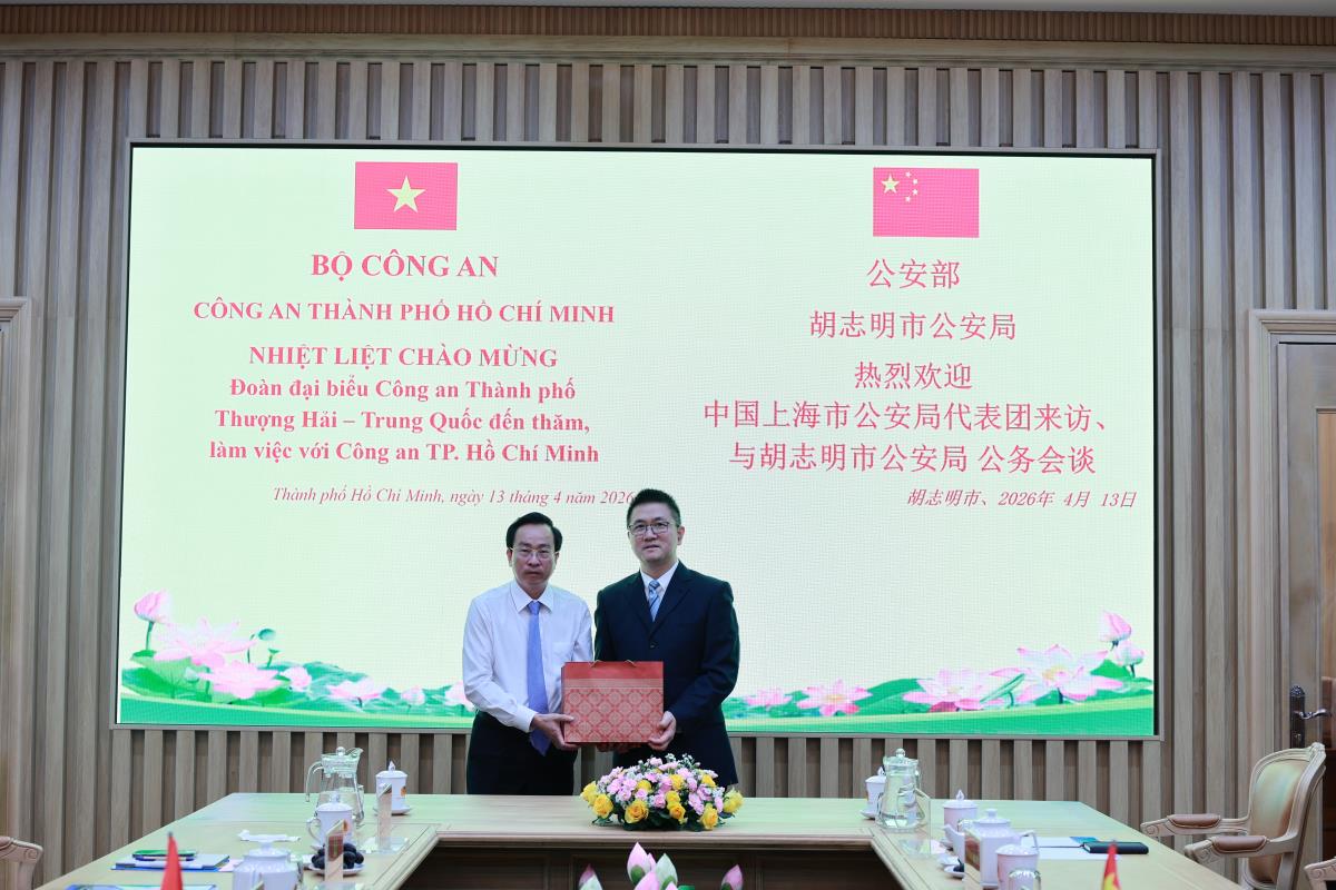 Trước đó, vào chiều 13/4, tại trụ sở Công an TPHCM, đoàn công tác Công an thành phố Thượng Hải (Trung Quốc) đã có buổi làm việc với Ban Giám đốc Công an TPHCM, sau chuỗi hoạt động tham quan, tìm hiểu thực tế trên địa bàn thành phố. Buổi làm việc do Đại tá Bùi Thanh Trực, Phó Giám đốc Công an TPHCM chủ trì, với sự tham dự của đại diện lãnh đạo các phòng nghiệp vụ CATP.