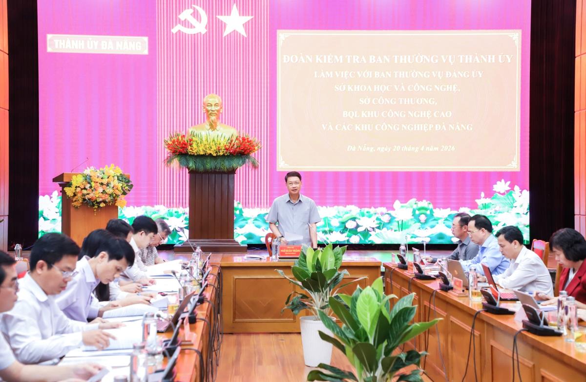 Chiều 20-4, Đoàn kiểm tra của Ban Thường vụ Thành ủy do Phó Bí thư Thành ủy Ngô Xuân Thắng làm trưởng đoàn chủ trì làm việc với Ban Thường vụ Đảng ủy các đơn vị: Sở Công Thương, Sở Khoa học và Công nghệ, Ban Quản lý Khu Công nghệ cao và các Khu công nghiệp Đà Nẵng để nghe báo cáo kết quả triển khai một số nhiệm vụ trọng tâm.