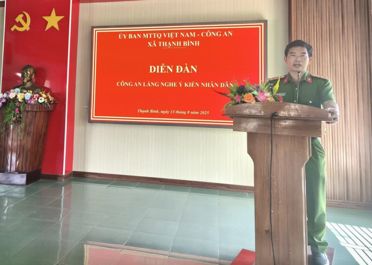 Ngày 13-8, Công an xã Thạnh Bình (TP Đà Nẵng) phối hợp cùng Ủy ban Mặt trận Tổ quốc Việt Nam xã tổ chức Diễn đàn “Công an lắng nghe ý kiến nhân dân năm 2025”. Tham dự Diễn đàn có đại diện lãnh đạo các phòng nghiệp vụ Công an thành phố, lãnh đạo xã cùng gần 200 người dân địa phương.