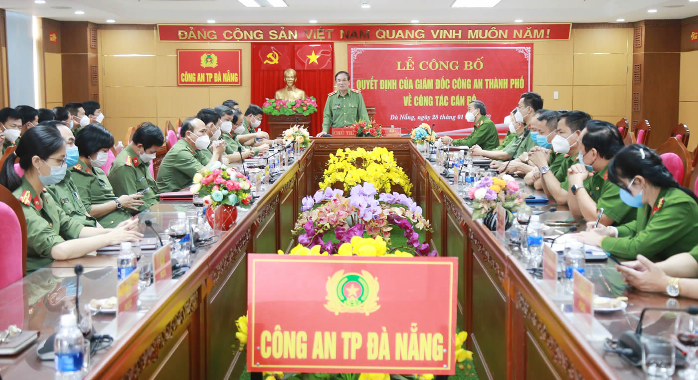 Sáng 28-1, nhân trước thềm năm mới Nhâm Dần 2022, Đảng uỷ - Bam Giám đốc Công an TP Đà Nẵng tổ chức buổi gặp mặt, chúc Tết lãnh đạo Công an các đơn vị, địa phương và quán triệt, phân công nhiệm vụ đảm bảo an ninh chính trị, trật tự an toàn xã hội cho người dân vui xuân trong dịp Tết. Thiếu tướng Vũ Xuân Viên – Uỷ viên BTV Thành uỷ - Bí thư Đảng uỷ - Giám đốc Công an TP chủ trì.