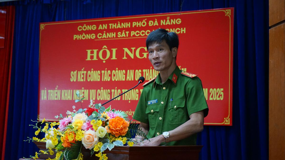 Ngày 22-7, Phòng Cảnh sát PCCC và CNCH Công an TP Đà Nẵng tổ chức Hội nghị sơ kết công tác 6 tháng đầu năm 2025 và triển khai nhiệm vụ trọng tâm 6 tháng cuối năm. Thượng tá Nguyễn Thành Nam - Trưởng phòng chủ trì Hội nghị; Thượng tá Trần Minh Nguyên - Phó Giám đốc Công an TP Đà Nẵng đến dự và phát biểu chỉ đạo.