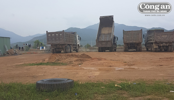Cảnh các xe dừng, đỗ phía trước khu CNC Đà Nẵng. Ảnh: H.NHẬT |