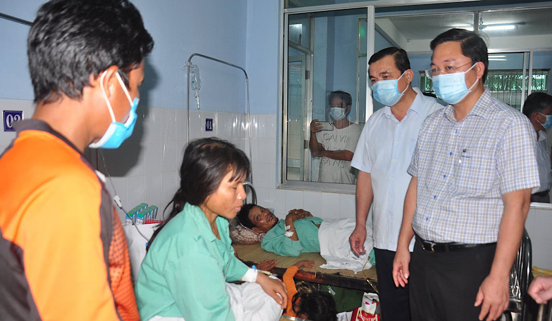 Lãnh đạo tỉnh Quảng Nam thăm các bệnh nhân trong vụ sạt lở đang điều trị tại Bệnh viện Đa khoa Quảng Nam. |
