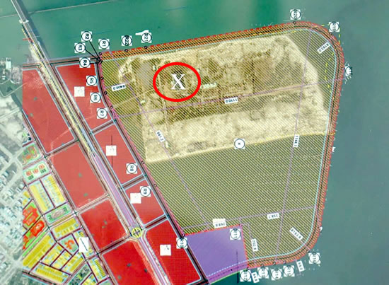 NMĐT ĐN chiếm một vị trí nhỏ (dấu X) trên sơ đồ quy hoạch KĐTTMDV phía Bắc vịnh Mân Quang. |