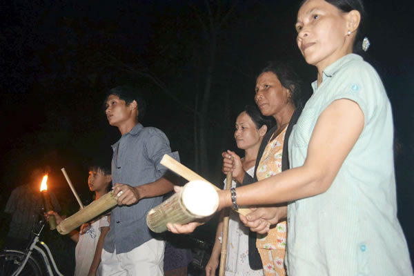 | Người dân thôn Cẩm Toại Tây hưởng ứng mô hình "Tiếng mõ an ninh". |