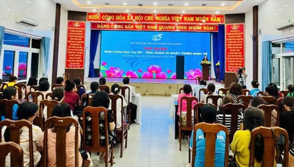 Tối ngày 22-4, Hội LHPN phường Hòa Khánh (TP Đà Nẵng) tổ chức lớp tập huấn "Bình dân học vụ số - Ứng dụng AI phát triển kinh tế cho Phụ nữ", với Chủ đề "Phụ nữ Hòa Khánh - Làm chủ công nghệ, phát triển kinh tế số" với sự tham gia của 63 học viên là cán bộ Chi hội Phụ nữ khu dân cư, phụ nữ khởi nghiệp, đang có ý tưởng khởi sự kinh doanh và đang tham gia các tổ, nhóm liên kết phát triển kinh tế thuộc khu vực Hòa Minh.
