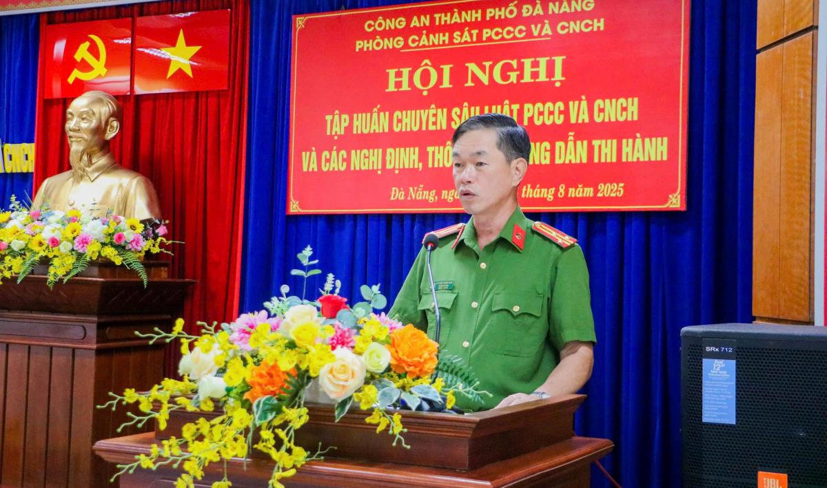 Thượng tá Nguyễn Thành Nam - Trưởng phòng khẳng định Luật PCCC và CNCH được Quốc hội khóa XV thông qua ngày 29-11-2024, là bước tiến quan trọng trong việc hoàn thiện hệ thống pháp luật về lĩnh vực này. Ngay sau đó, Chính phủ ban hành Nghị định số 105 và 106; Bộ Công an ban hành các Thông tư số 36, 37, 38 quy định chi tiết và hướng dẫn thi hành; UBND TP Đà Nẵng cũng đã triển khai các kế hoạch phù hợp với tình hình thực tiễn địa phương. Mục tiêu của lớp tập huấn là giúp lãnh đạo, CBCS nắm vững nội dung cốt lõi của Luật và các văn bản hướng dẫn, hiểu rõ những điểm mới, những thay đổi về phân công, phân cấp và trách nhiệm quản lý nhà nước.