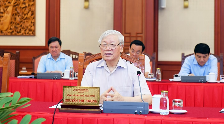 Tổng Bí thư, Chủ tịch nước Nguyễn Phú Trọng phát biểu chỉ đạo tại buổi làm việc. |