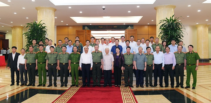 Tổng Bí thư, Chủ tịch nước mong rằng, lực lượng Công an luôn phối hợp chặt chẽ với lực lượng quân đội, các cơ quan hữu quan, kiên quyết đấu tranh phòng, chống tham nhũng, tiêu cực, làm trong sạch bộ máy nhà nước.
