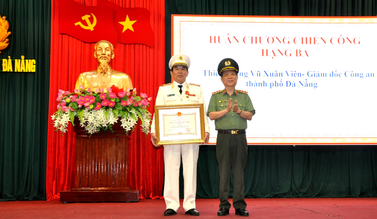 * Thiếu tướng Vũ Xuân Viên – Giám đốc Công an TP Đà Nẵng đón nhận Huân chương Chiến công hạng Ba