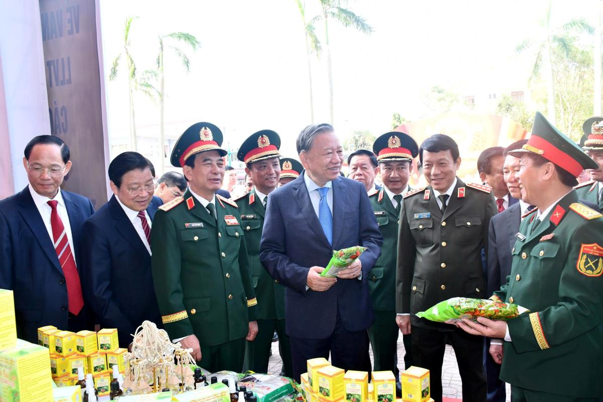 Tổng Bí thư Tô Lâm khẳng định, trải qua 80 năm xây dựng, chiến đấu, chiến thắng và trưởng thành, các thế hệ lãnh đạo, chỉ huy, cán bộ, nhân viên, chiến sĩ, người lao động LLVT Quân khu 4 đã phát huy cao độ bản lĩnh, trí tuệ, nghệ thuật quân sự Việt Nam, lập nên nhiều chiến công và thành tích xuất sắc trong các cuộc chiến đấu giải phóng dân tộc, cũng như trong sự nghiệp xây dựng, bảo vệ Tổ quốc; xứng đáng với truyền thống và những phần thưởng cao quý mà Đảng, Nhà nước, Quân đội trao tặng.Tổng Bí thư lưu ý, dựng nước phải đi đôi với giữ nước, lo giữ nước từ khi nước chưa nguy là bài học lịch sử, truyền thống quý báu, tư tưởng chiến lược, trở thành quy luật trong sự nghiệp xây dựng và bảo vệ Tổ quốc của dân tộc.