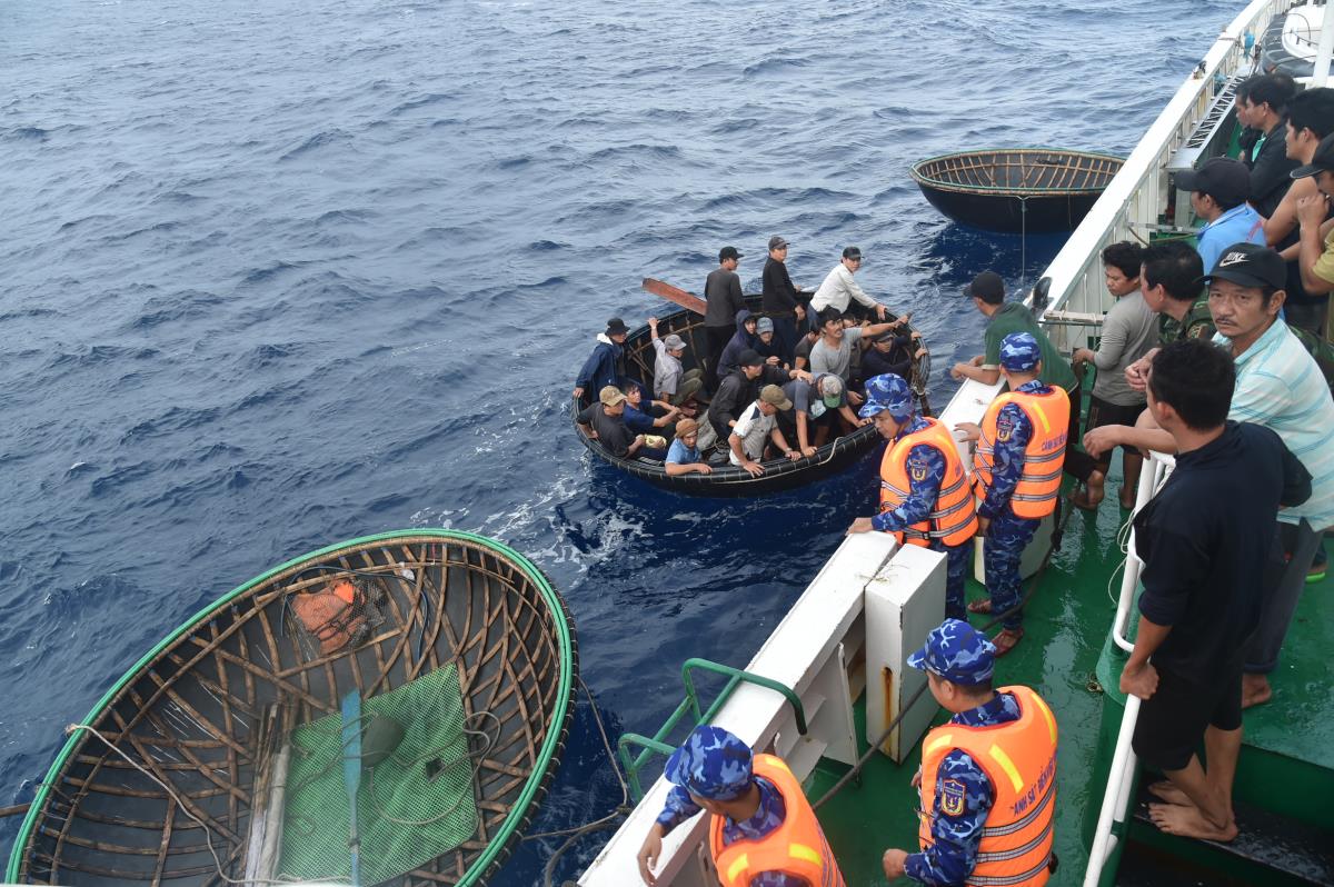 Tàu Cảnh sát biển 2 tiếp nhận 52 thuyền viên tàu cá Đà Nẵng bị chìm ở Trường Sa