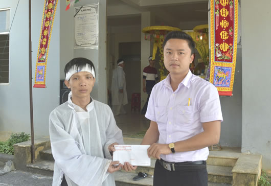 (Cadn.com.vn) - Đà Nẵng- Ngày 29-1, đại diện Cty CP Vận tải và Thương mại Phú Hoàng (Taxi Tiên Sa) đã đến chia buồn và trao số tiền ủng hộ 5 triệu đồng cho gia đình bà Huỳnh Thị Quy (người vừa mới qua đời ở tuổi 75 ngày 26-1 sau một thời gian dài lâm bệnh hiểm nghèo). Bà Quy nuôi cháu nội Trần Văn Chánh (1984) khi mới tròn 3 tháng tuổi đến nay, trong tình trạng cơ thể suy dinh dưỡng vì thiếu sữa. Suốt hơn 20 năm qua, bà Quy phải dẫn Chánh đi làm thuê khắp nơi kiếm sống qua ngày.