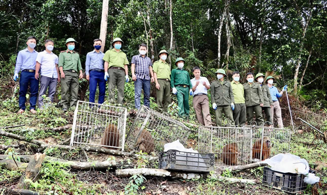 Vườn Quốc gia Vũ Quang (Hà Tĩnh) vừa phối hợp với Hạt Kiểm lâm huyện Vũ Quang, Công an huyện Vũ Quang, Đồn biên phòng Hương Quang tiến hành tái thả 39 cá thể động vật hoang dã thuộc danh mục loài nguy cấp quý hiếm, bao gồm: 35 cá thể rắn hổ mang một mắt kính; 2 cá thể khỉ mặt đỏ và 2 cá thể khỉ mốc về với môi trường rừng tự nhiên. Được biết, 39 cá thể động vật hoang dã này được Trung tâm cứu hộ, bảo tồn và Phát triển sinh vật Hoàng Liên (Vườn Quốc gia Hoàng Liên- Lào Cai) bàn giao cho Vườn Quốc gia Vũ Quang vào ngày 16-3.