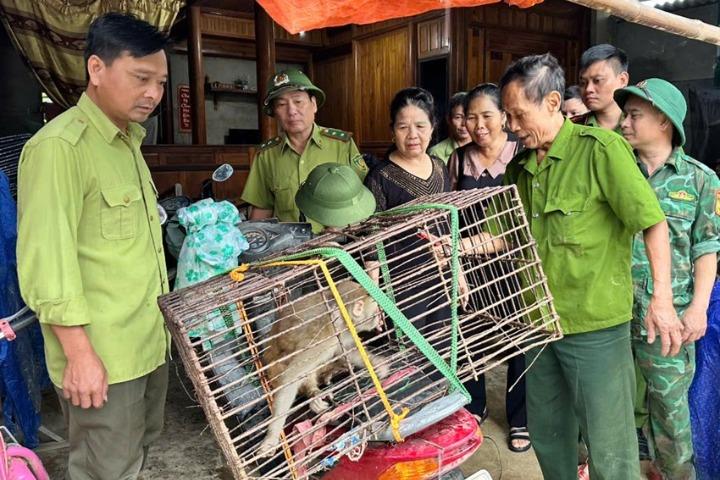 Trước đó, ông Đinh Thận (1955, trú xã Hương Xuân, Hà Tĩnh) phát hiện 1 cá thể khỉ nặng khoảng 4kg trong vườn nhà nên trình báo cơ quan chức năng.