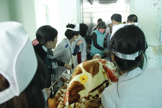Chị Mão được đưa đi cấp cứu với nhiều vết thương nặng trên cơ thể. |