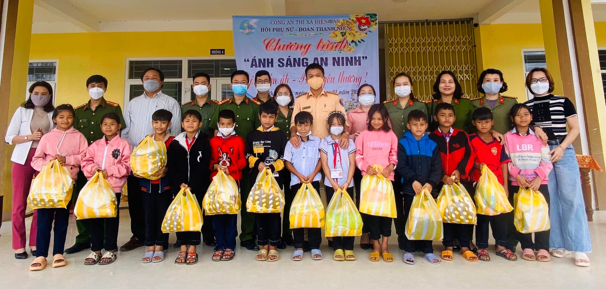 QUẢNG NAM - Cùng ngày, Hội phụ nữ phối hợp với Đoàn thanh niên Công an thị xã Điện Bàn tổ chức chương trình “Ánh sáng An ninh - Đông ấm áp - Xuân Yêu thương” tại trường Tiểu học và Trung học cơ sở Kim Đồng (xã Phước Đức, H. Phước Sơn, Quảng Nam). Các cán bộ chiến sĩ đã xây dựng 5 trụ điện chiếu sáng năng lượng mặt trời trong khuôn viên trường, tặng 2 máy nước nóng năng lượng mặt trời phục vụ cho các em nội trú tại trường và tặng 80 suất quà với số tiền 24 triệu đồng. Ngoài ra, cán bộ chiến sĩ còn tổ chức chương trình “Triệu phần quà san sẻ yêu thương” trị giá hơn 16 triệu đồng nhằm chia sẻ khó khăn với bà con nhân dân xã Phước Đức.