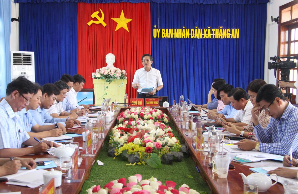 Báo cáo tại buổi làm việc, Chủ tịch UBND xã Thăng An Nguyễn Thanh Phong cho biết, xã Thăng An được thành lập trên cơ sở sáp nhập 5 xã: Bình Dương, Bình Đào, Bình Minh, Bình Giang và Bình Triều. Ngay từ khi triển khai chính quyền 2 cấp, xã Thăng An đã xác định nhiệm vụ chính trị quan trọng, tập trung ổn định tổ chức bộ máy, bắt tay ngay vào chỉ đạo thực hiện nhiệm vụ trên tất cả các lĩnh vực.