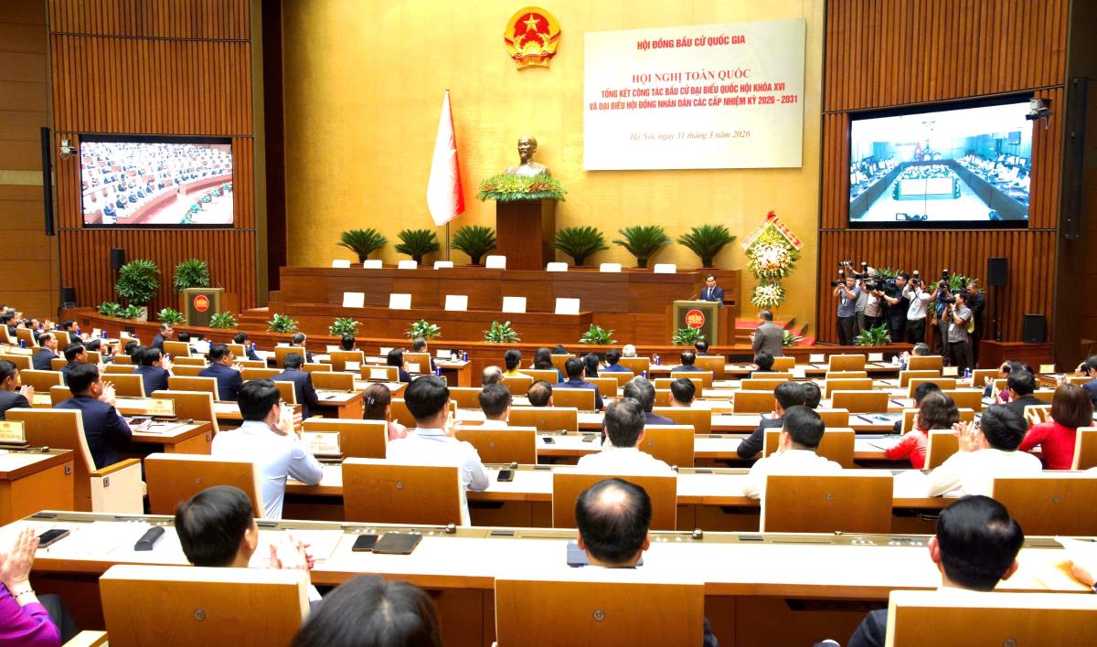 Chiều 31-3, Hội nghị trực tuyến toàn quốc tổng kết công tác bầu cử đại biểu Quốc hội khóa XVI và đại biểu HĐND các cấp nhiệm kỳ 2026-2031 được tổ chức.