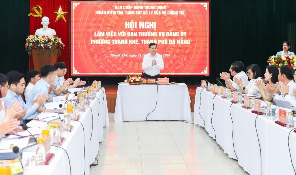Ngày 21-4, Phó Bí thư Thường trực Đảng ủy các cơ quan Trung ương Nguyễn Long Hải, Phó Trưởng đoàn Kiểm tra, giám sát số 12 của Bộ Chính trị làm việc với Ban Thường vụ Đảng ủy phường Thanh Khê và phường Sơn Trà.