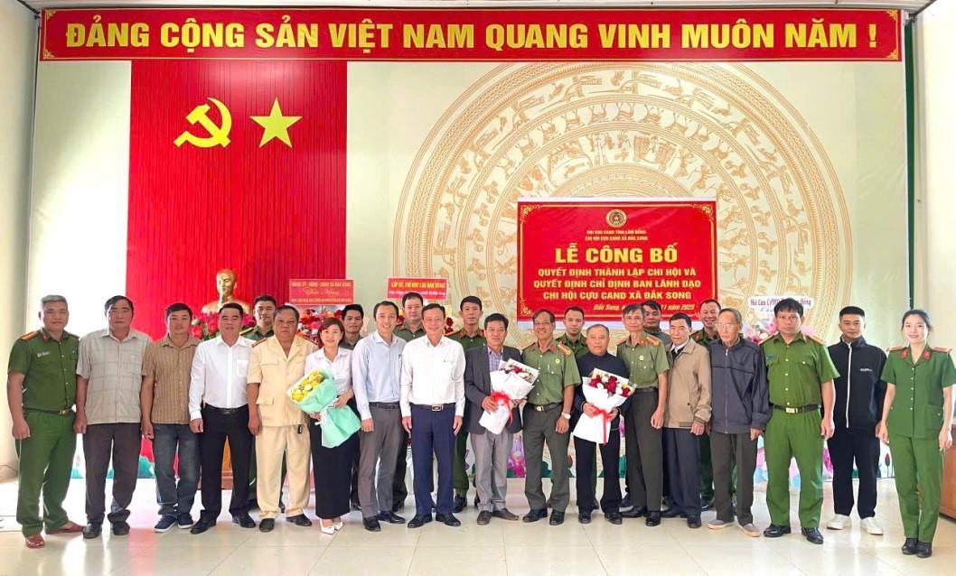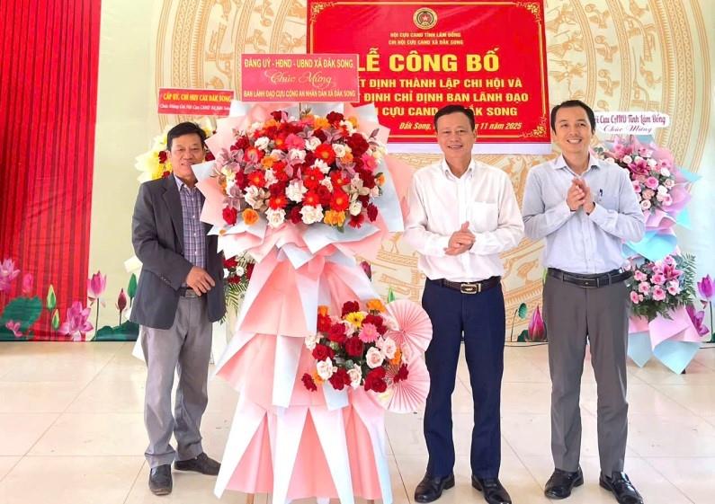 Tại buổi lễ, lãnh đạo Hội Cựu CAND tỉnh Lâm Đồng đã công bố và trao Quyết định thành lập Chi hội và Quyết định chỉ định Ban lãnh đạo Chi hội Cựu Công an xã Đắk Song gồm 1 đồng chí Chi hội trưởng và 2 đồng chí Chi hội phó.