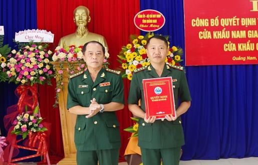 Trước đó ngày 12-12-2020, Chính phủ ban hành Nghị quyết số 183 về việc nâng cấp cửa khẩu chính Nam Giang thành cửa khẩu quốc tế. Theo đó, ngày 9-7-2022 Bộ Quốc phòng ra Quyết định số 2503 về việc tổ chức lại và ban hành biểu tổ chức biên chế Đồn, Trạm Biên phòng Cửa khẩu Nam Giang thành Đồn, Trạm Biên phòng Cửa khẩu quốc tế Nam Giang. Đây là dấu mốc khẳng định vị trí, tầm quan trọng của Cửa khẩu quốc tế Nam Giang, là cửa ngõ giao thương quốc tế, kết nối giữa vùng kinh tế trọng điểm miền Trung Việt Nam với vùng kinh tế Nam Lào, Đông Bắc Thái Lan và Campuchia; góp phần quan trọng trong phát triển kinh tế, xã hội, an ninh quốc phòng, đối ngoại của tỉnh Quảng Nam, khu vực miền Trung và cả nước.