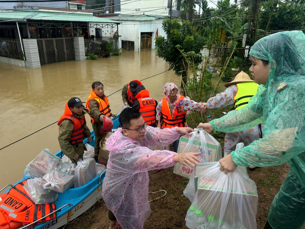 Đoàn công tác cũng đến các điểm dân cư bị cô lập để trao tận tay quà hỗ trợ, đồng thời nắm bắt tình hình, động viên bà con bình tĩnh, chủ động phòng tránh, bảo đảm an toàn tính mạng và tài sản khi mưa lũ còn diễn biến phức tạp.
