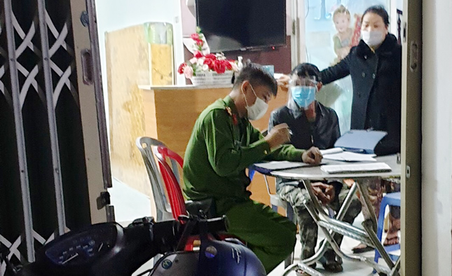 Cảnh sát khu vực Công an xã Hòa Phong (H. Hòa Vang) kiểm tra cư trú tại một hộ dân tại khu dân cư vào ban đêm.