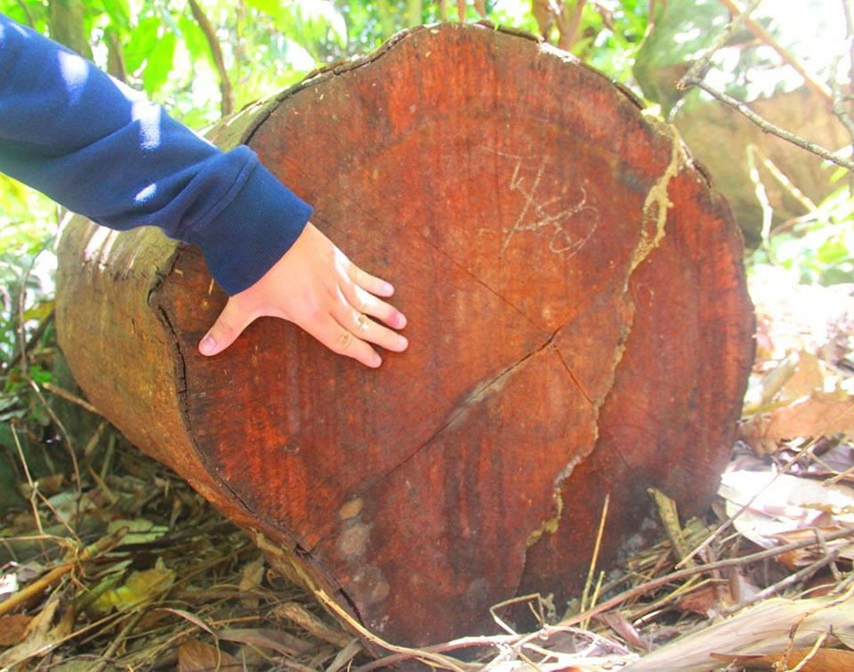 Những cây gỗ có đường kính lớn bị chặt phá tại Tiểu khu 341, xã Chà Vàl. |