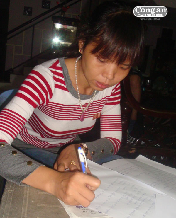 Chị Phạm Thị Thanh Tài trình bày việc bị lừa. |