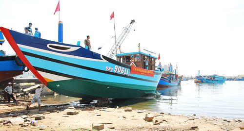 (Cadn.com.vn) - Đà Nẵng: Sáng 14-5, thêm một tàu cá thuộc hàng “khủng” của ngư dân Đà Nẵng đã hạ thủy, sát cánh cùng cộng đồng ngư dân thành phố đi Hoàng Sa, vừa đánh bắt thủy sản, làm dịch vụ hậu cần, vừa tham gia bảo vệ chủ quyền biển đảo của Tổ quốc. Con tàu số hiệu ĐNa – 90611 là của ông Trần Toàn (trú P. Thuận Phước, Q. Hải Châu) có công suất 860CV, được đóng mới trong thời gian 2 tháng, trị giá 3,2 tỷ đồng.