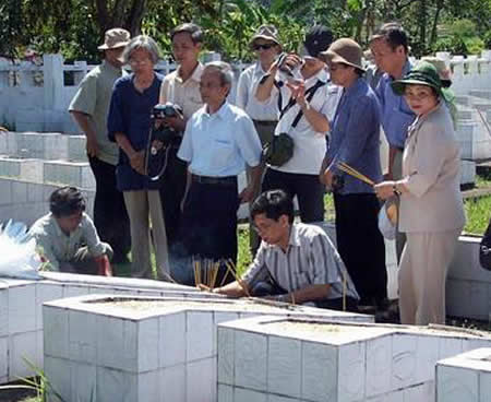 Văn nghệ sĩ thăm lại vùng chiến khu xưa và thắp hương tưởng niệm nhà thơ Nguyễn Mỹ tại NTLS Trà My. |