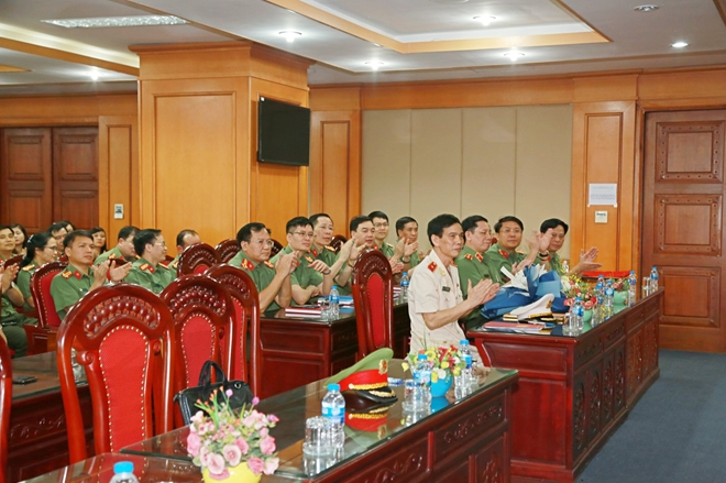 Đảng ủy, lãnh đạo Cục Tổ chức cán bộ chúc mừng Thiếu tướng Hoàng Đức Lừng. |