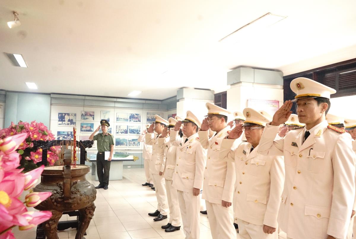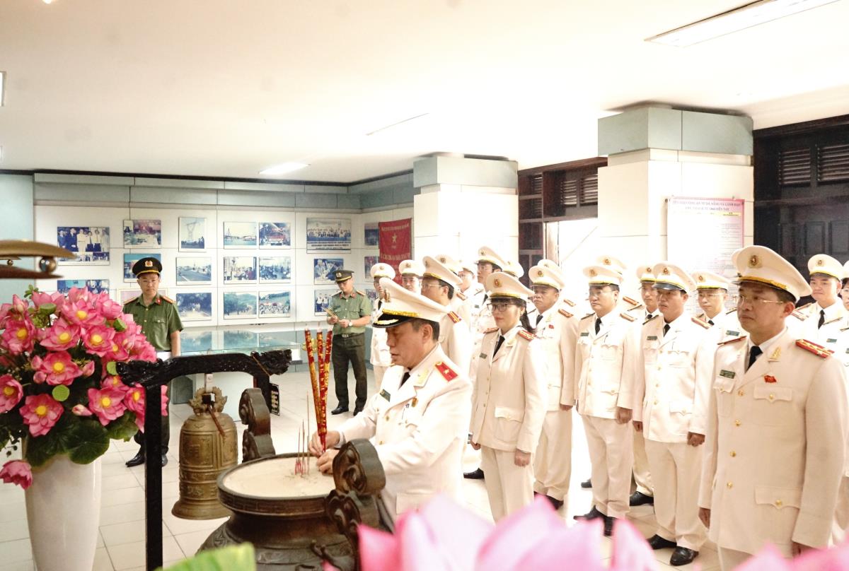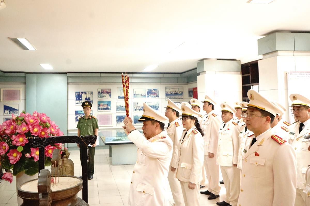 Thiếu tướng Nguyễn Hữu hợp cùng đoàn đại biểu dâng hương tưởng nhớ Chủ tịch Hồ Chí Minh tại Nhà truyền thống Công an thành phố