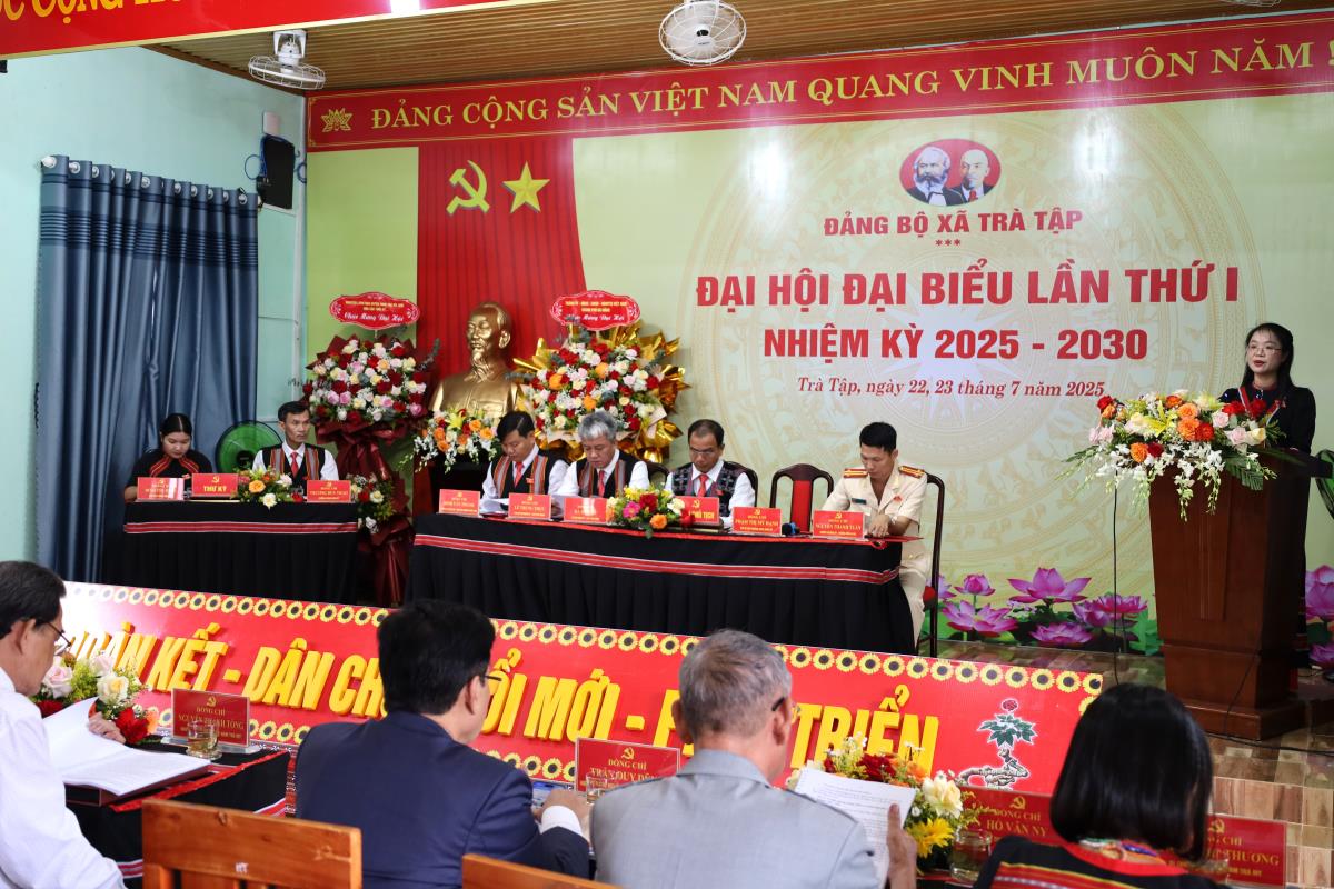Theo chương trình, Đại hội đã công bố quyết định của Ban Thường vụ Thành ủy Đà Nẵng chỉ định Ban Chấp hành Đảng bộ xã Trà Tập 23 người, Ban Thường vụ Đảng ủy 9 người; ông Hà Ra Diêu được chỉ định Bí thư Đảng ủy xã; 2 Phó Bí thư Đảng ủy xã là bà Phạm Thị Mỹ Hạnh và ông Lê Trung Thực.