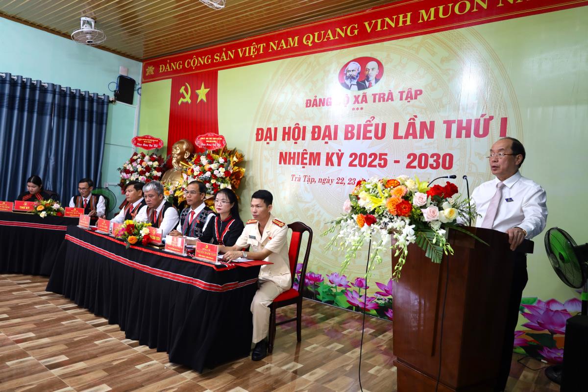 Phát biểu chỉ đạo tại Đại hội, Thiếu tướng Nguyễn Hữu Hợp - Giám đốc Công an TP Đà Nẵng đánh giá cao tinh thần trách nhiệm, sự chuẩn bị chu đáo, bài bản, khoa học của Đảng ủy xã Trà Tập cho Đại hội lần này; cho thấy sự chỉ đạo sát sao, tinh thần đoàn kết của Đảng bộ xã; thật sự là đợt sinh hoạt chính trị sâu rộng, tạo khí thế mới, quyết tâm mới cho toàn Đảng bộ bước vào nhiệm kỳ 2025- 2030 với niềm tin khát vọng lớn.