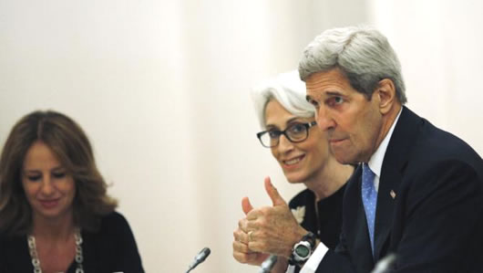 Ngoại trưởng Mỹ John Kerry (phải) tỏ ra lạc quan về khả năng sớm đạt thỏa thuận hạt nhân với Iran. Ảnh: AP |