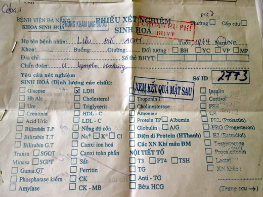 | Xét nghiệm sinh hóa cho thấy anh Anh bị ung thư; và anh Anh sau khi phẫu thuật chỉ còn 35 ký nhưng đến nay đã khỏe mạnh. |